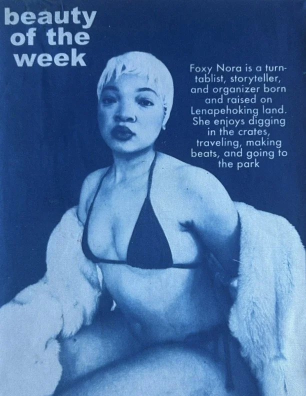 Foxy Nora is a turn-tablist, storyteller, and organizer born and raised on Lenapehoking land. She enjoys diggin in the crates, traveling, making beats and going to the park.