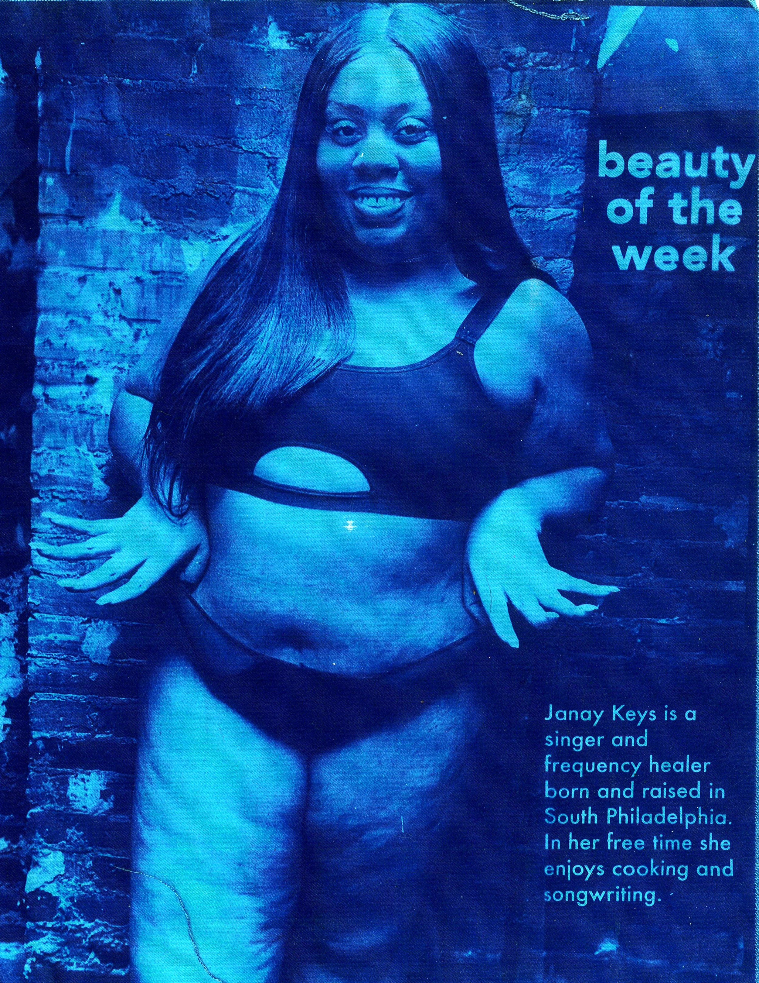 I essentially spent all of my twenties living in Philadelphia. In these very formative years of my life the city shaped me as both an artist and individual, not only through the opportunities I took on, but most importantly through the people I met. Beauty of the Week acts an ode to my time in Philadelphia, using the process of cyanotype to reimagine everyday Philadelphia women and femmes as Beauty of the Weeks as inspired by the iconic JET magazine segment. As I believe my connections and interactions with Black femmes have been defining points of my artistic relationship with Philadelphia, I collaborated with Black femme artists, cultural workers, and organizers to complicate Western understandings of the black female figure. Ultimately, Beauty of the Week seeks to confront current narratives about Black women’s interactions with publicness, visibility, beauty and agency, while archiving Black femme’s hopes for the future of Philadelphia. This work was then turned into a series of wheat-pasted posters featured across the city, in the neighborhoods the respective Beauties are from, accompanied with audio interviews from each of them. All prints and interviews are featured below.